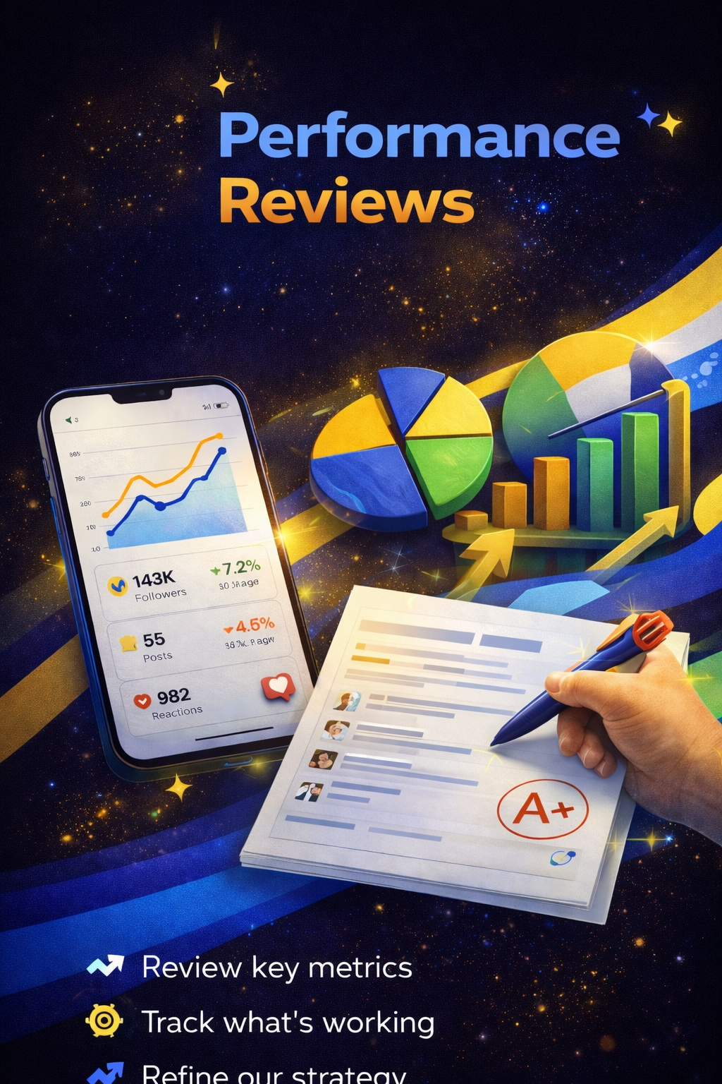 Reach, impressions, saves, shares. Tracked weekly and optimized every month based on what is actually working.